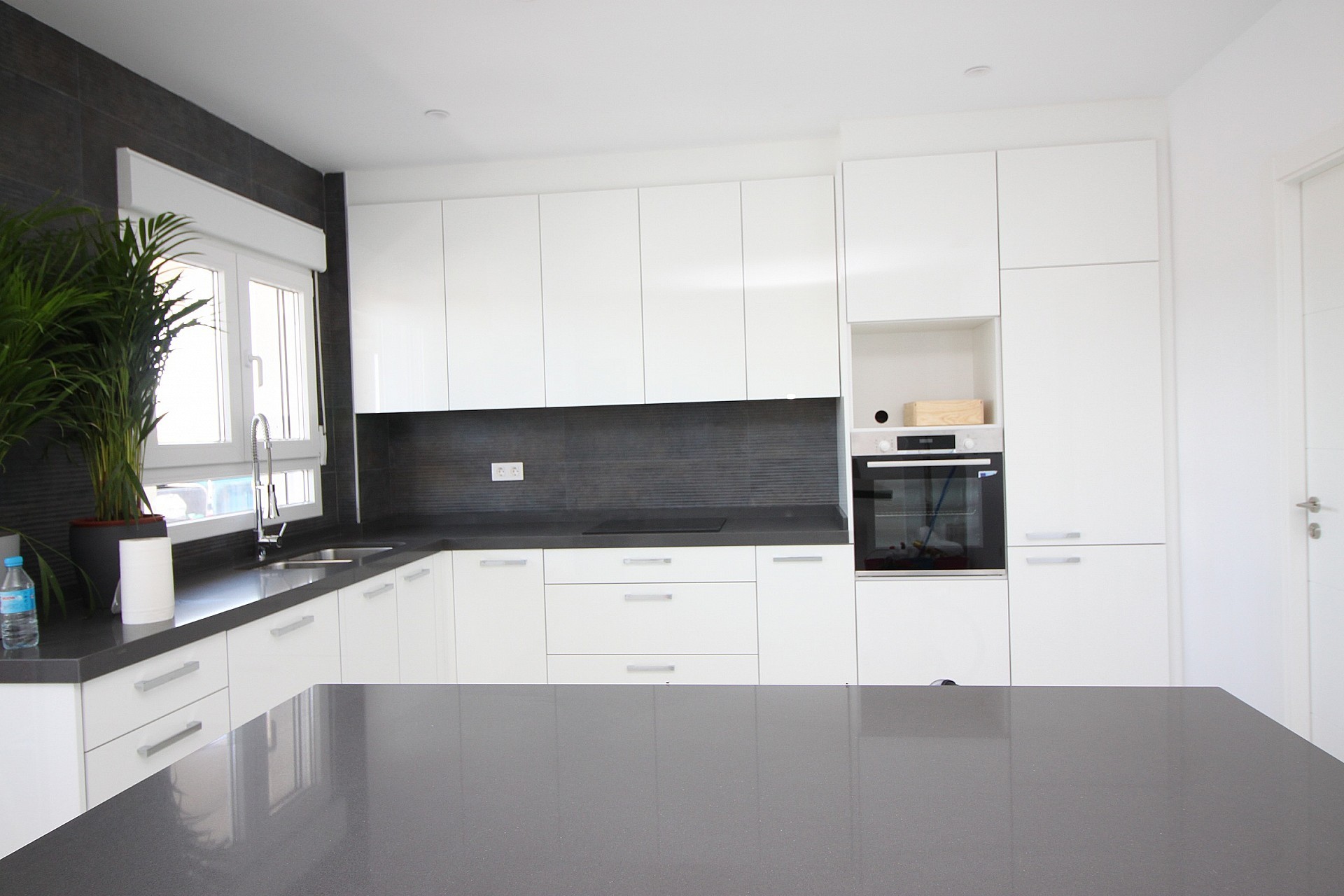 The kitchens include cabinets with standard doors and handles, as per plans provided, stainless stell sink and tap, pre-installation for oven, dishwasher, extractor, and various granite worktops to choose from which are included in the budget. (other stone worktops are available but with an extra cost.) White goods not included.