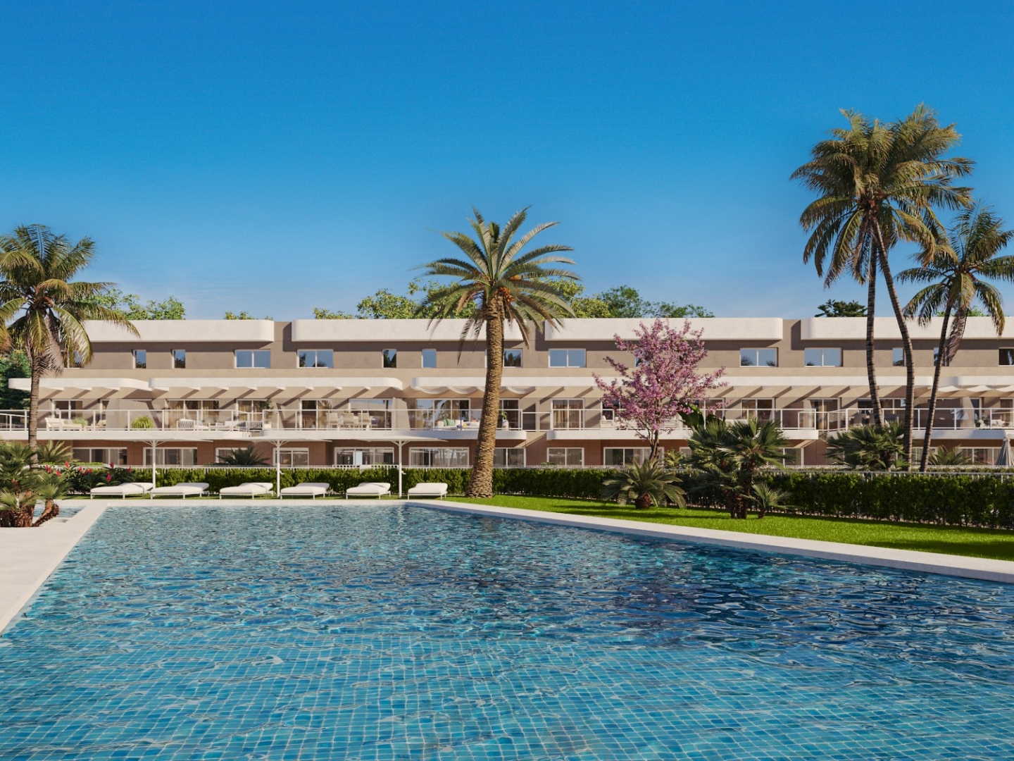 Community pool for adults with a designated children's pool area.Landscaped communal spaces.Fully accessible pathways throughout the development.Private parking with pre-installation for electric vehicle charging.