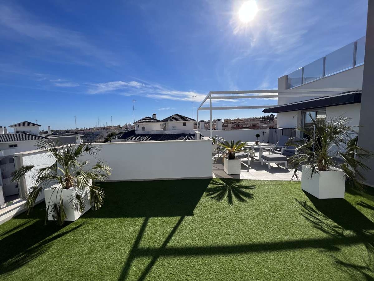 Apartment Welcome to this beautiful and modern 3 bedroom and 2 bathroom apartment in a closed urbanization in Villamartín/Las Filipinas. This southeast facing property has an area of 91m2 with a stunning 82m2 outside area. It includes 3 large and comfortable bedrooms. The master bedroom has its own bathroom, offering privacy and comfort. The greatest asset of this apartment is the large terrace with artificial grass, palm trees and a dining area.The apartment is located on the 2nd floor of a building with a lift and an underground parking. The apartment has modern furniture and high-end finishes. The elegant, fully equipped kitchen opens to the living room and dining room, creating a cozy space for daily living or entertaining. The apartment is surrounded by all kinds of services such as supermarkets, bars and restaurants. The urbanization was completed in 2022. It is large and spacious, and offers a large communal pool, jacuzzi and green areas with a playground for the young ones. Perfect location for families and golfers.Share