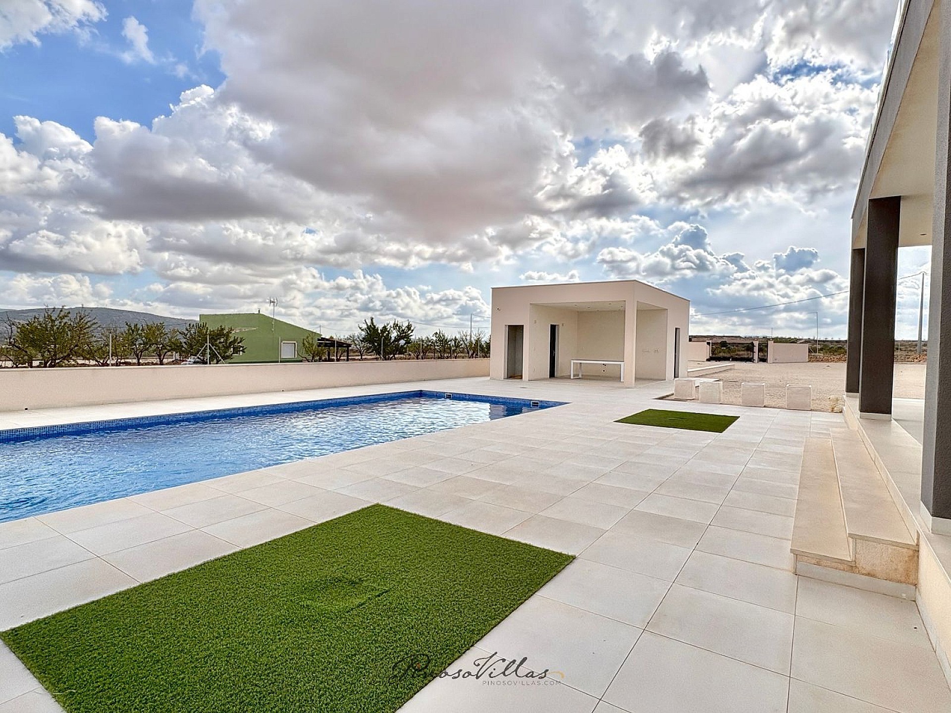 Villa Lovely 3 Bed 3 Bath New build Villa in Pinoso.. We are pleased to present this beautiful 3 bed 3 bath new build villa in Pinoso This stunning new build villa in Pinoso offers modern comfort, style, and beautiful surroundings. With warm and inviting living spaces, this home is designed for both relaxation and entertaining. Inside you’ll find three spacious bedrooms, including a master with ensuite bathroom and walk in dressing area. The Main bathroom is elegantly finished offering a clean and contemporary look. The modern kitchen features and island perfect for entertaining and a large utility room for added convenience. The bright and spacious living room overlooks the pool and captures breathtaking mountain views. The villa is equipped with air con and zoned underfloor heating, allowing you to control each room individually for maximum comfort. Upstairs a large balcony provided spectacular views of surrounding countryside while the ground floor terrace opens onto the lovely pool area ideal for relaxing or hosting friends. Outside you’ll find a generous plot ready to personalize with trees, gardens or even a vegetable plot. The plot also includes electric gates, irrigation water with the option to connect to the mains which is already in place at the top of the plot. And you have a spacious garage for vehicles and storage. Also and outside toilet for extra convenience adjoined to a covered seating area which could easily be converted to an outside kitchen area all ready with electric fitted, a great feature to have. This home has so much to offer, stylish, functional, and surrounded by natural beauty and we love the fact all bedrooms are ensuite So, book a viewing today to truly appreciate the quality comfort and views this villa provides. About Pinoso. Pinoso has all the amenities you need: Supermarkets such as Consum, Dia, Mas y Mas and Hiperber, a wide range of restaurants including Irish and Indian and bars (50+), a 24hr medical centre, English speaking dentists, veterinary, shops, bars, restaurants, etc and celebrates a weekly market on Saturday and indoor market open 6 days a week. Pinoso has 3 primary schools, a high school and a music school. There is also a new cultural centre which houses a library and Spanish classes open to foreigners. It’s one of Spain’s richest towns, with a marble mine, thriving footwear industry, salt deposits and a booming wine and agriculture industry. The town sits located in the mountainous countryside of the Alicante wine region, 45-50 minutes’ drive to Alicante airport, city and beaches and close to the border of Murcia. The city Elda & Petrer is a 20 minutes’ drive, it has a large Hospital with English speaking doctors, a huge range of bars and restaurants, indoor shopping centre, big international gym, Carrefour, Aldi, Lidl, Cinema with English movies shown weekly, bowling and fast-food outlets. Throughout the year Pinoso has its traditional Spanish Fiestas with parades and musical performances which are renowned around the country, bonfires with a magic feeling and were people go out on the streets. There is also an annual running of the bulls (the bulls are not harmed!) which draws crowds from around the region to watch the brave participants join the bulls in the special arena.Share