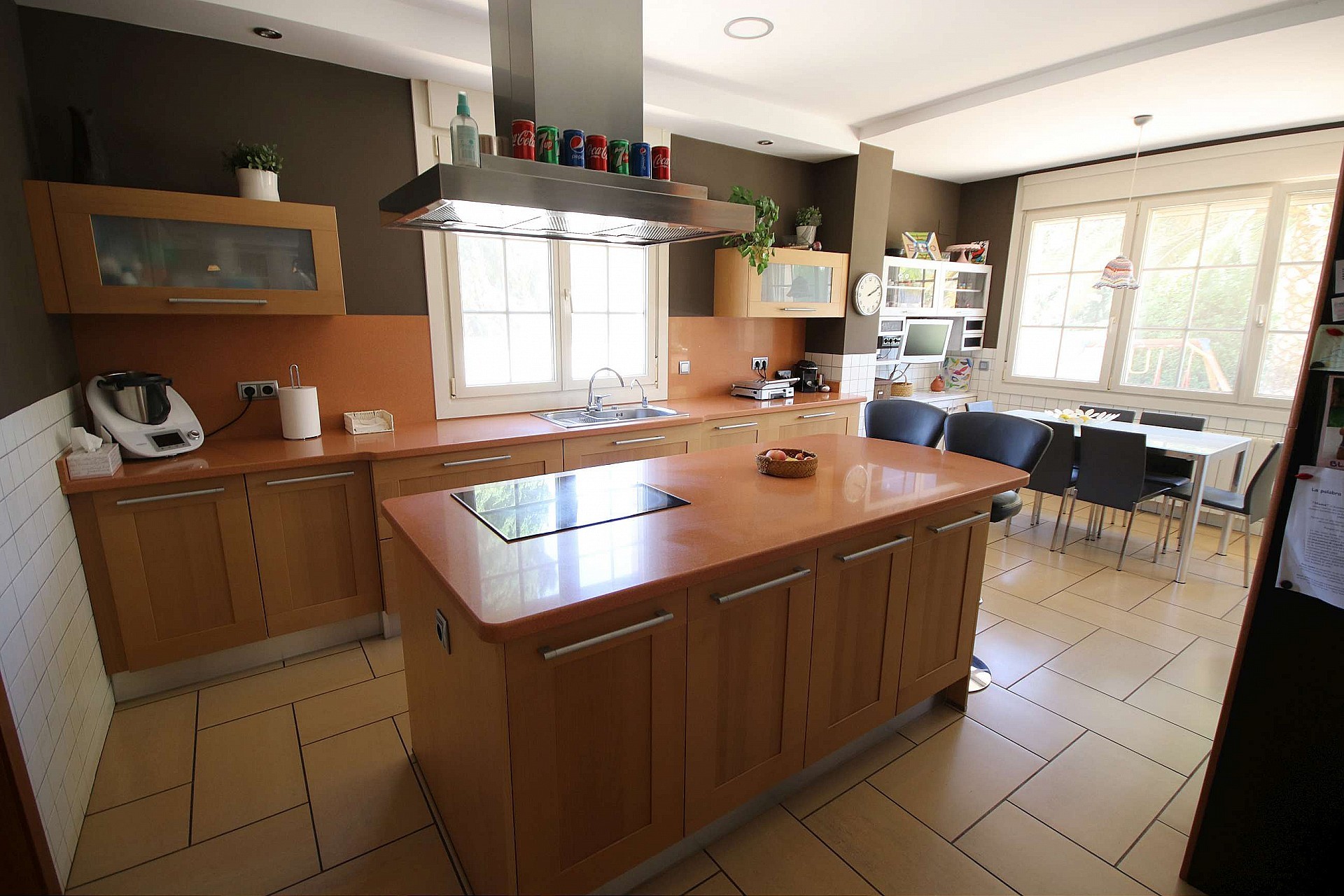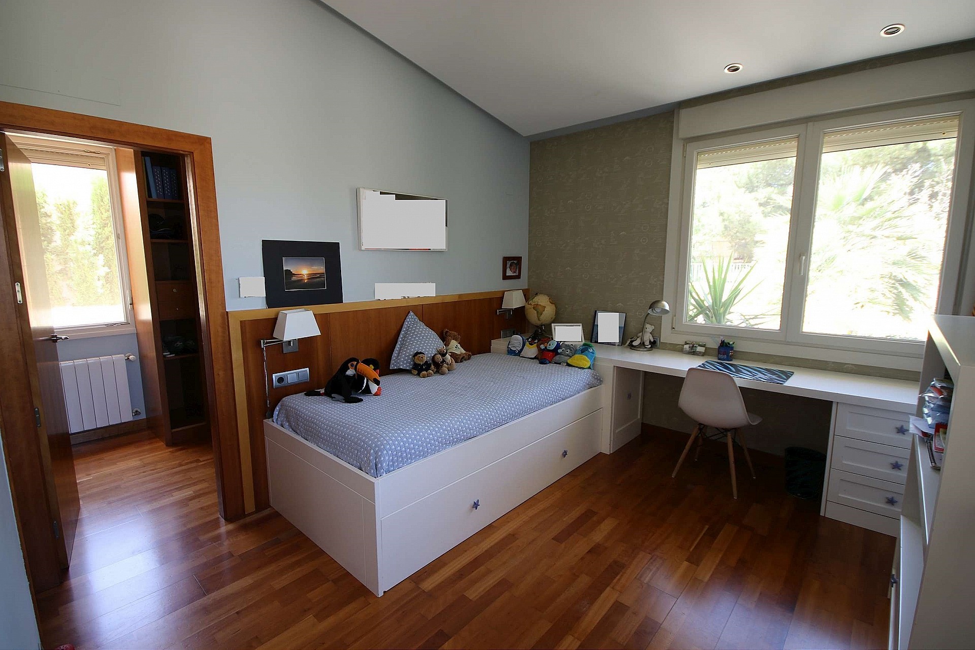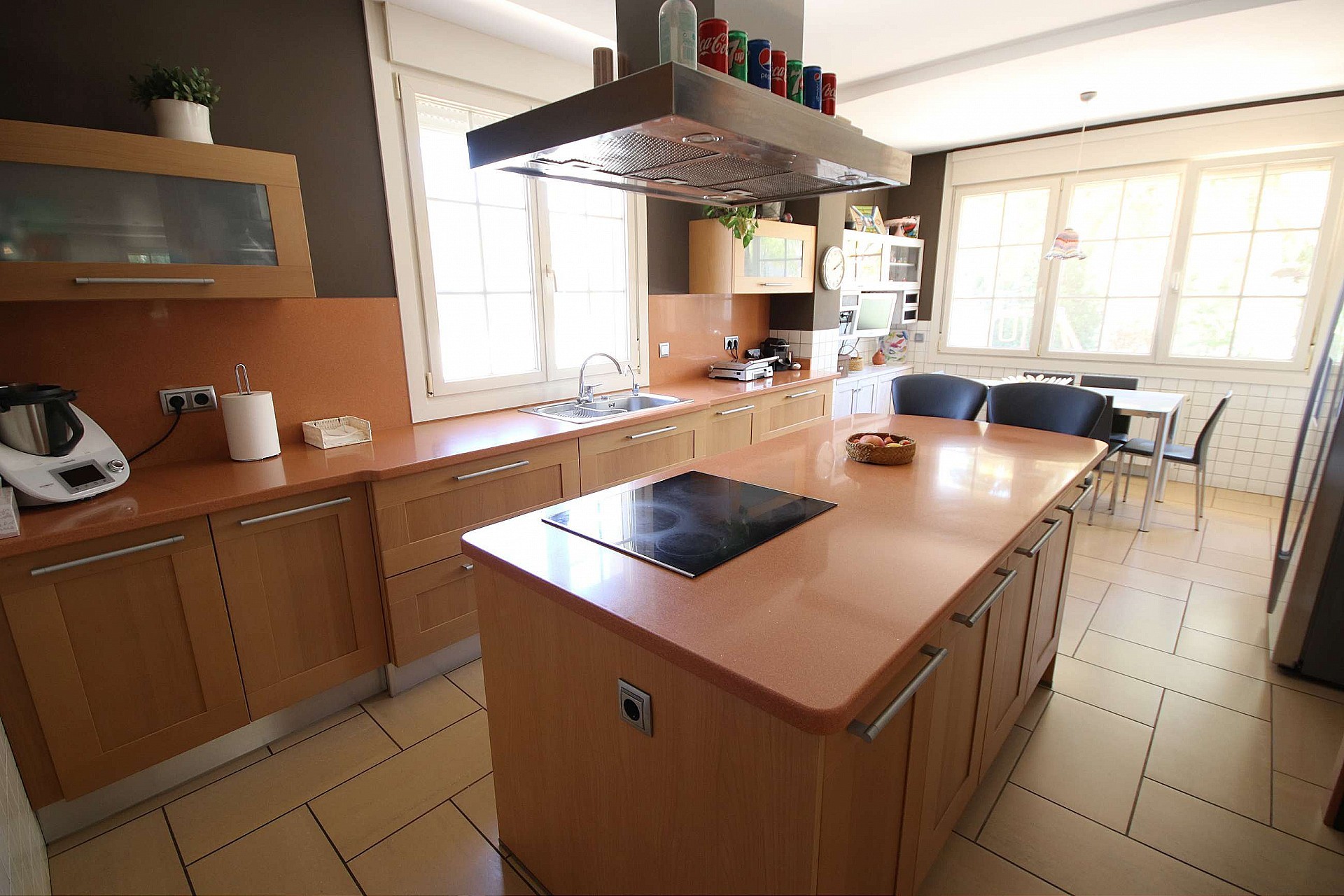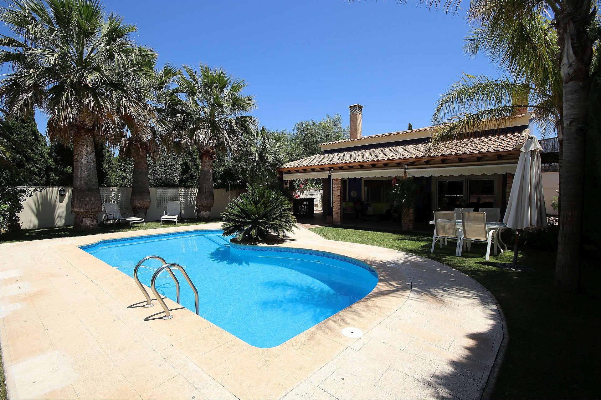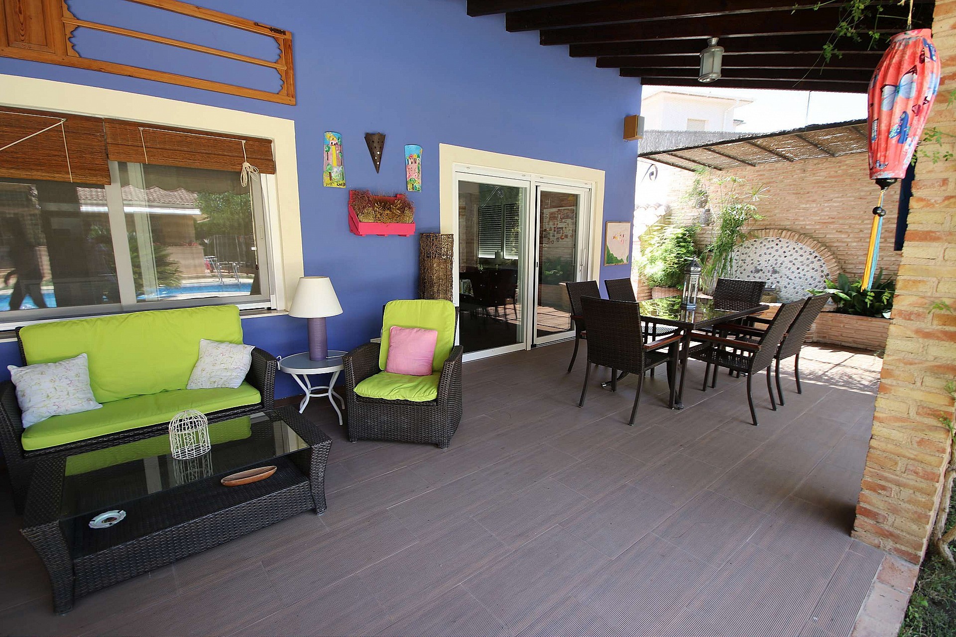 Villa Large Villa with a pool and garden. Large urban Town House in the best area of Monovar, with a private garden with a lovely swimming pool and outside kitchen-dining room. The plot size is 1160m² with a total build size of 587m². The house has two floors and a basement, with 5 bedrooms (3 with an ensuite bathroom and dressing room), 5 bathrooms (+ another outside), a lounge-dining room with a fireplace, large kitchen with a pantry, utility room, an office (which could be a 6th bedroom), entrance hallway and a terrace off the master bedroom overlooking the garden and town. It also has ducted air conditioning in all the rooms, heating, pvc windows, automatic windows in some rooms, automatic shutters and automatic awnings, furniture made to fit in every room, sold furnished. Two whirpool baths, and two bathrooms with both a walk-in shower and bath. The basement has space for a few cars and also a toilet, boiler room and a games room for children. Outside there is natural grass around the pool and an automatic irrigation system for all the garden, and a covered terrace by the outside BBQ. Top quality build in a great location, walking distance to shops, restaurants and many other services and amenities. Monovar is an excellent place to take a break from the stressful city, it’s a very quiet town with a population of just over 12,000. People here are very polite and friendly, always keen to help. The town has several supermarkets (Mercadona, Hiperber…) which are easy to access and open Monday to Saturday, a weekly market and a good 24h medical centre. There are various parks where you can take your children, and a good choice of pubs to have a drink and restaurants where you can try local and Mediterranean food. In Monovar there’s also an indoor swimming pool open all year, with a spa and sauna, as well as a gym with personal trainers, zumba classes, spinning, yoga etc. Monovar is only 30 minutes away from the city of Alicante, the airport and beaches. In September Monovar celebrates its local fiestas with a lot of events where everyone is welcome. The city of Elda & Petrer is less than a 10 minutes drive away, which has a large Hospital with English speaking doctors, a huge range of bars and restaurants, indoor shopping centre, big international gym, Carrefour, Aldi, Lidl, Cinema with English movies shown weekly, bowling and fast food outlets.Share