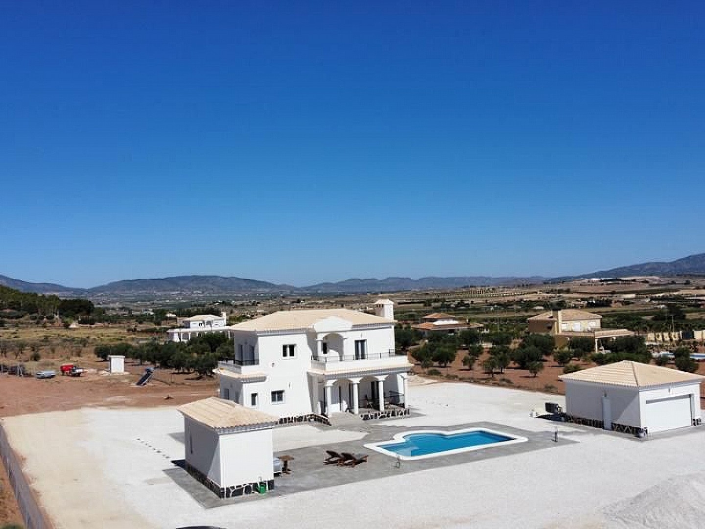 New Build, Villa Luxury New Villa with pool and plot. Build your dream Villa in Alicante's beautiful countryside, and from day one you can secure full ownership with the title deed in your name from the start, and we give the best level of protection giving you complete peace of mind knowing your investment is legally safeguarded. All our villas are built to order you can build your ideal home tailored exactly to your requirements. Our builder is a family run business and are the biggest and best builders in the area that use top quality materials for a perfect finish, and are based in Pinoso with more than 30 years of experience and over 100 villas successfully built plus 20 which we now have under construction. With hundreds of happy clients his reputation is built on quality, reliability and a truly personal approach. We offer full custom/built options, allowing you to design your dream home from scratch or adapt any of our existing styles. Whatever changes you require we do our very best to make your vision a reality. You can visit many or our completed homes to see first hand the craftsmanship, attention to detail and high-quality finishes we deliver. Nothing is too much for our clients we are always happy to help and guide you through every step of the process, making your build experience smooth, enjoyable and exciting. All our houses include 2m stamped concrete terrace around the pool (colour and pattern to choose), 1m around the house, gated entrance, 3000m2 fencing, pre-installed ducted aircon, standard kitchen, security door, german tilt and turn windows (or sliding if prefered), built-in fireplace and chimney, pre-installation for tv and internet, gravel driveway plus a few meters around the house, septic tank. Bathrooms include a shower column, shower tray or bath, sink units (various colours to choose from) with sinks, taps and mirrors, plus a big selection of wall tiles., and a wide selection of ceramic floor tiles, with different colours, wood effect, etc. The kitchens include cabinets with standard doors and handles, as per plans provided, stainless stell sink and tap, pre-installation for oven, dishwasher, extractor, and various granite worktops to choose from which are included in the budget. (other stone worktops are available but with an extra cost.) White goods not included. Marble staircase (cream or grey) and railings are included, plus railings for the front porch. Big fixed glass window on the staircase for extra light. Choice of tiles and steps design for swimming pool. Choice of the granite for the houses' exterior steps and window sils. Our great 10cm insulation all around guarantees at least an Energy Certificate B rating but an A in most cases (depending on house size and design), we have a big selection of tiles, plus kitchens and bathrooms included in your budget. We have different legal building plots, some walking distance to town, some totally private and our most popular ones are within 5-10 mins drive to a town. We have a plot for every taste, all with amazing views and all have mains water + electric included in the price and high speed internet available. All paperwork included (build license, habitation license, 10 year build guarantee, etc.) plus weekly reports and drone photos. Key in hand in 7-8 months from the first payment. EPC rating A (best around). These beautiful country residences are customised for each client's personal tastes. The model shown in these pictures has an additional 30sqm guest house, and the clients added a BBQ & Summer Kitchen later on. The template villa offers 4 bedrooms, 4 bathrooms, large lounge with fireplace, kitchen with utility and a large covered porch as well as a couple of terraces off two bedrooms offering commanding views over vineyards or orchards. It also comes pre-installed for ducted cooling and heating with AC to all rooms to ensure year round comfort. Villa with traditional Spanish touches and super modern, bright and clean. Wow factor new builds ...watch the video http://youtu.be/WNyNEtlFQpM The minimum plot size to be able to build on is 10,000sqm. Plots available with mains water, electric and high speed internet in Pinoso and other areas. Contact us for a video tour and more details. Our new build villas now have the following options for self-sufficient living (they already come with mains electricity and water): Complete Solar systems Water tank storage from rainwater Raised veg, You can Upgrade to a 10m x5m pool €6,000. A single or double garage can be added. Guest house also optional and customizable. Reserve your plot for only €10,000 Stage payments available with a 30% (of the build cost without counting the land value) initial down payment, with the option to buy the plot at this stage to go in your name. Further payments can be tailored for your preferences, normally two more 30% payments and a final 10% payment on completion. First stage payment includes full architects project, 3D plans, building licences, fencing, foundations and concrete structure finished. Also available in Albatera, Hondon de las Nieves, Hondon Frailes, Aspe and surrounding towns such as Monovar, La Romana, Canada Del Trigo, Sax, Salinas and areas like Dolores and Catral dependant upon plot price. Using the latest quality building techniques we now guarantee a B Energy Certificate rating which reduces your tax bill and saves you cash on cooling and heating. With various plots to choose from around the beautiful Alicante wine region; Pinoso, Culebron, Lel, Ubeda and Raspay areas offer amazing views and the best Spanish lifestyle. This area boasts some spectacular wine producing towns which are traditionally charming and welcoming. All our plots are within 10 min drive to amenities such as supermarkets, doctors, bars, restaurants and activities. Most of our plots are within a 45 min drive to Alicante airport, city and beaches. (Please note that all build sizes and prices below don’t include the plot. Plots start f