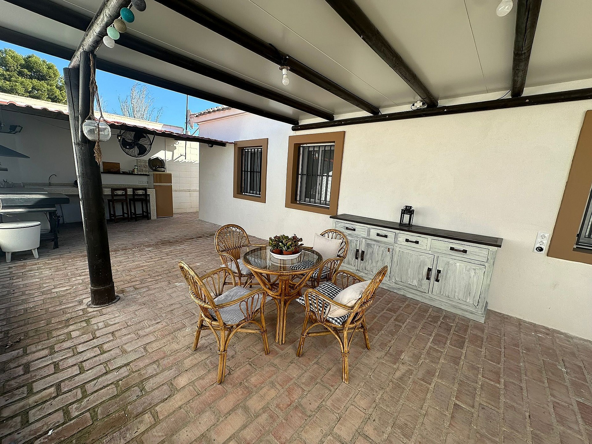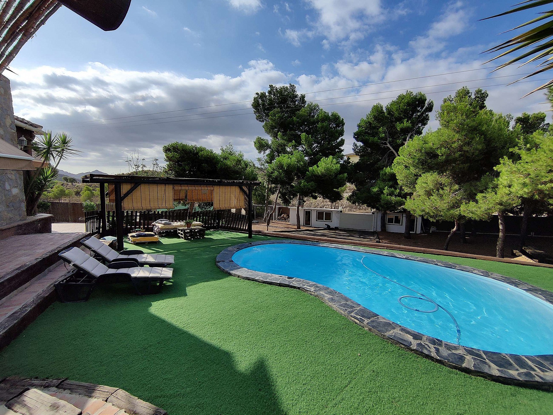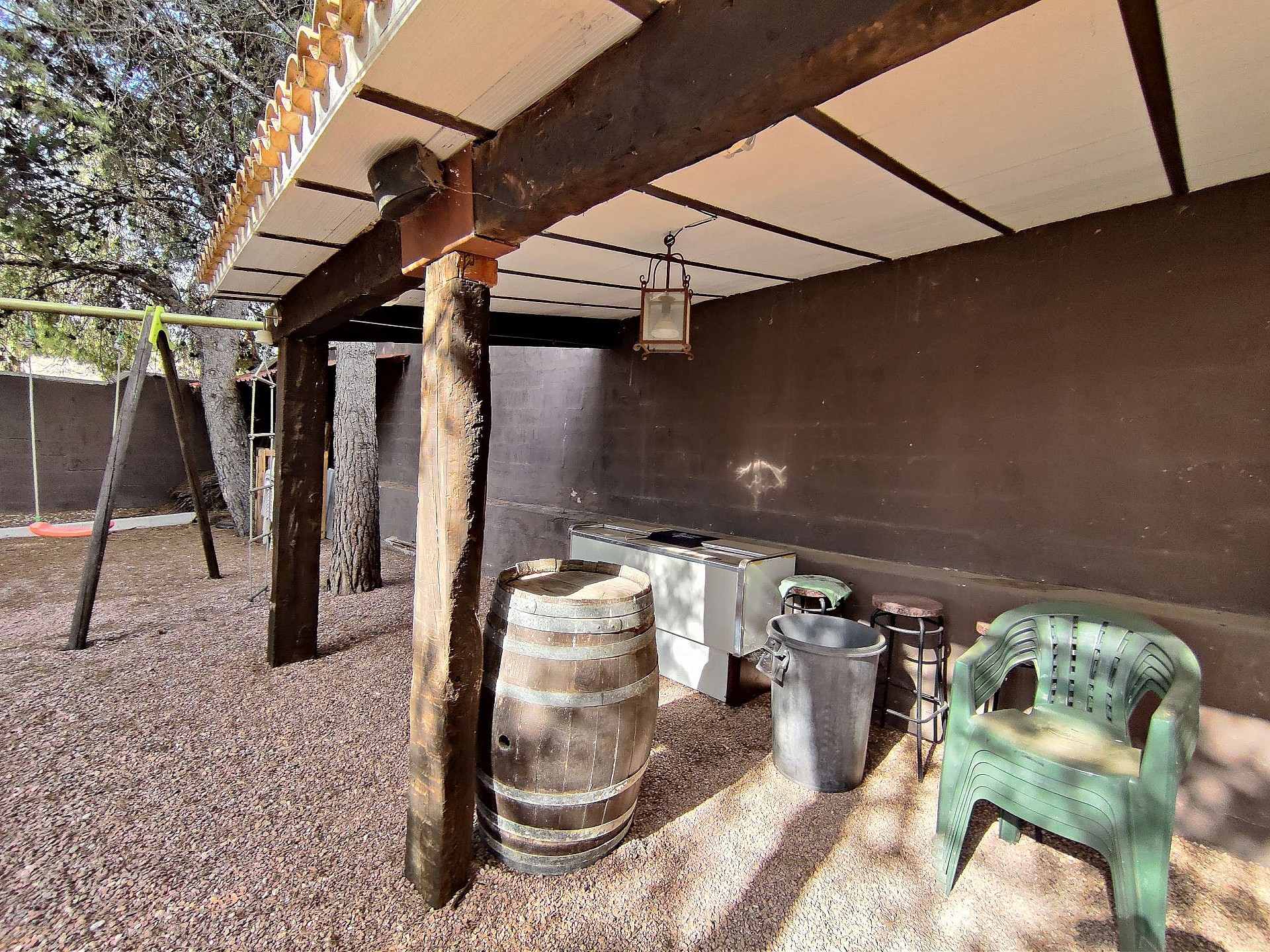 Villa Large Detached Villa walking distance to Monovar. Detached Villa walking distance to Monovar, with a size of around 100m2, 3 bedrooms and 1 bathroom, with a lounge-dining room and open plan kitchen. The plot size is 2000m2, fully enclosed with an automatic gate entrance. There is a swimming pool, a 45m2 summer kitchen by the pool with a bathroom, open barbecue area, two storage rooms, a childrens play room and various seating areas. The garden has big pine trees ideal for shade in the summer. Fully reformed villa ready to move in Monovar is a small town in Alicante province, with a population of over 13,000 people. It is about 15 km from Pinoso and famous for its marble quarries, shoe making and wine. It is in a pretty, mountainous area, the town stands at a height of 341m (1,119 ft). Monovar has several traditional fiestas during the year, ranging from “Dwarves and Giants' ' in July to the week-long town fiesta in September in honour of the Virgen de los Remedios. Like many towns in the area, traditional food includes rice dishes made with rabbit and snail, gazpacho manchego – a hearty rabbit stew, migas – fried breadcrumbs with garlic and usually chorizo and of course the local red wine. There are 4 bodegas close by. The modern day town has many bars and restaurants, small shops, a large supermarket, bullring, two wineries, a theatre/concert hall and a cultural centre. Monovar is a safe and friendly place to live and makes an interesting day visit. It is located on the CV83, the main road that runs from Elda to Pinoso.Share
