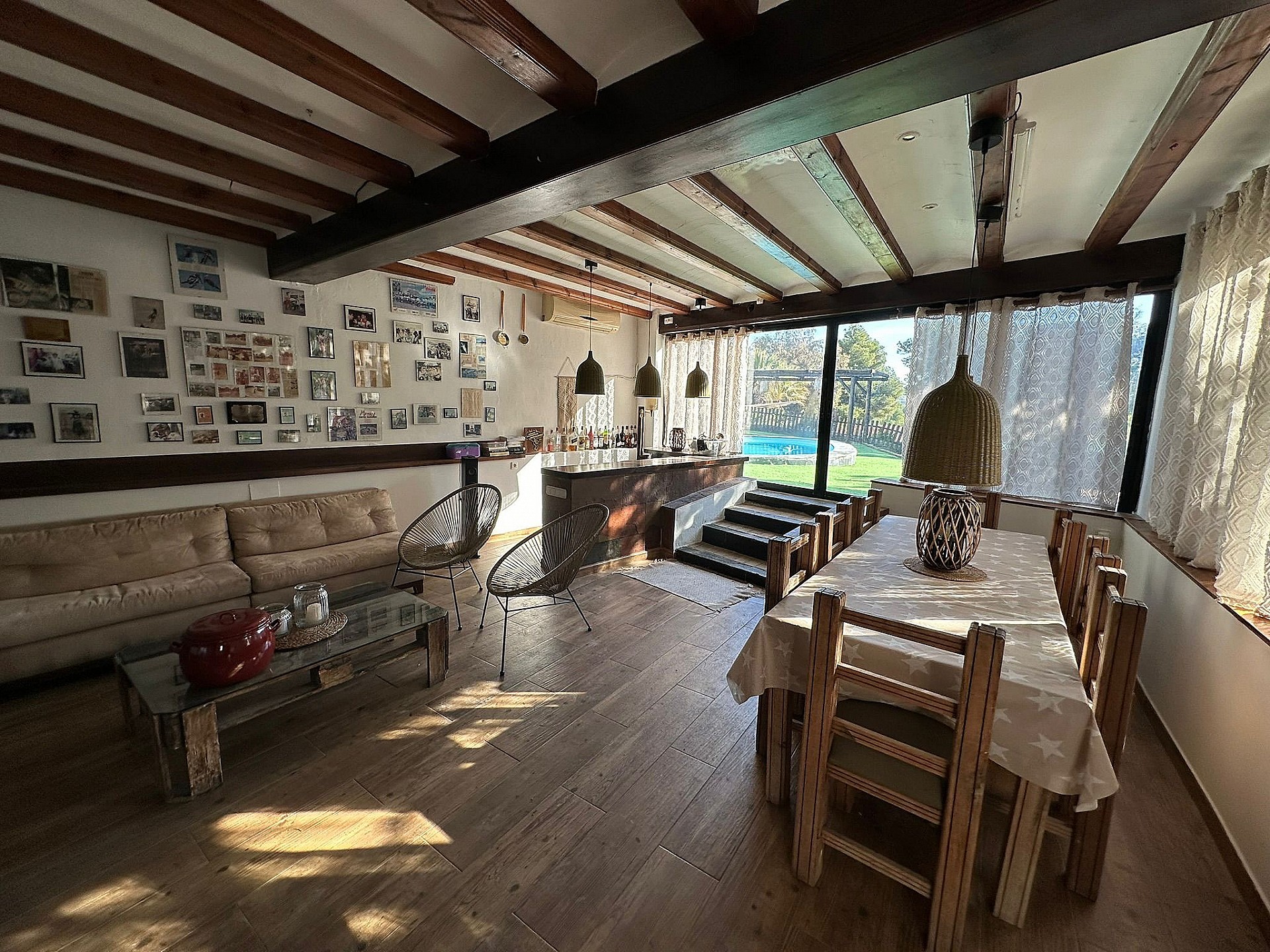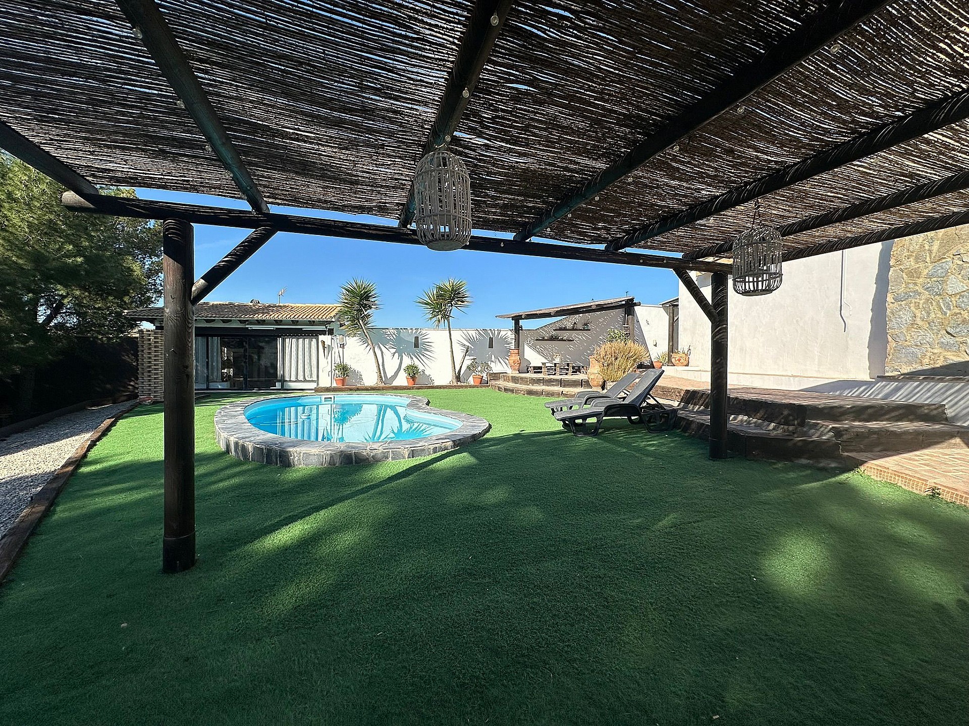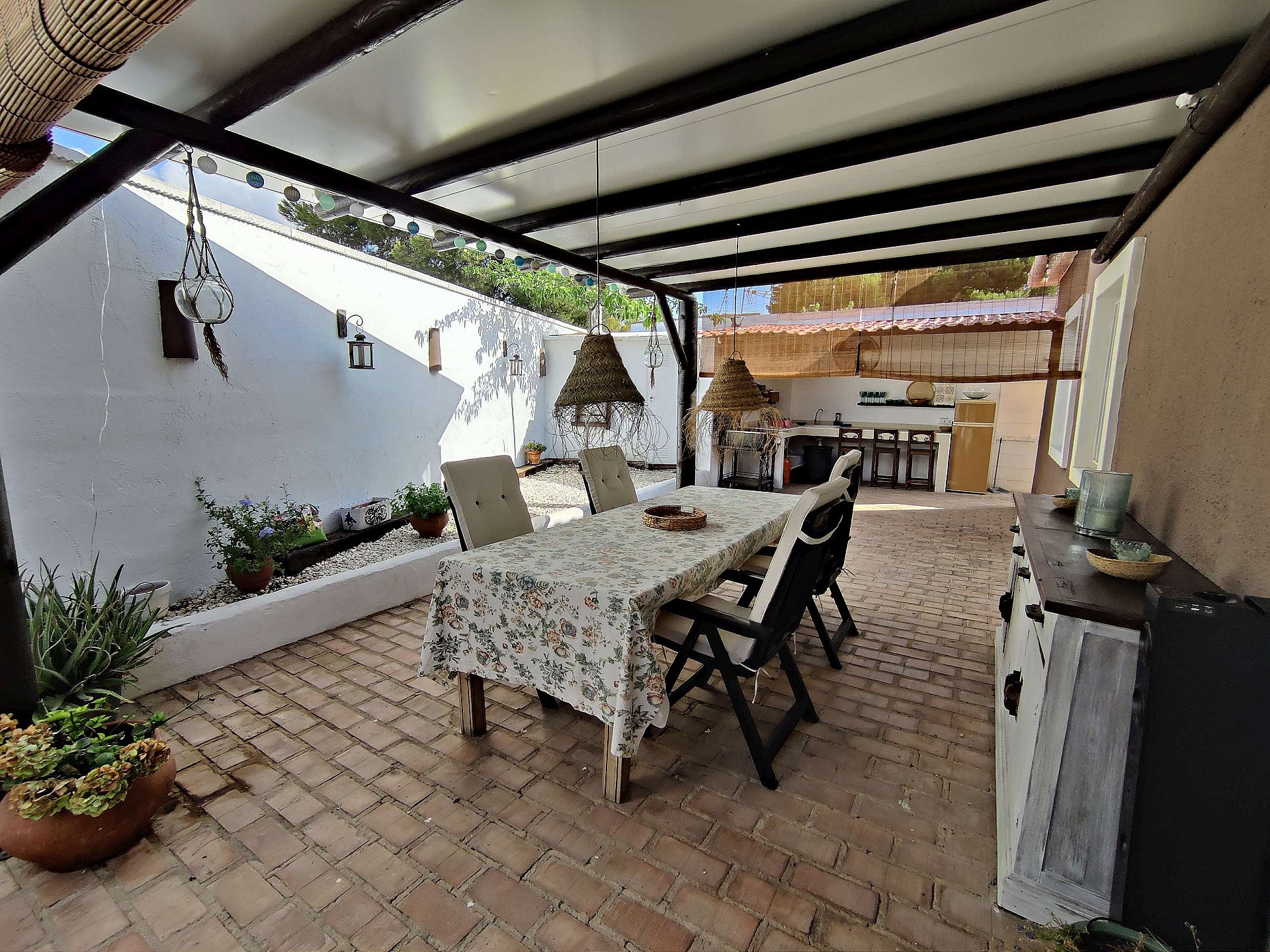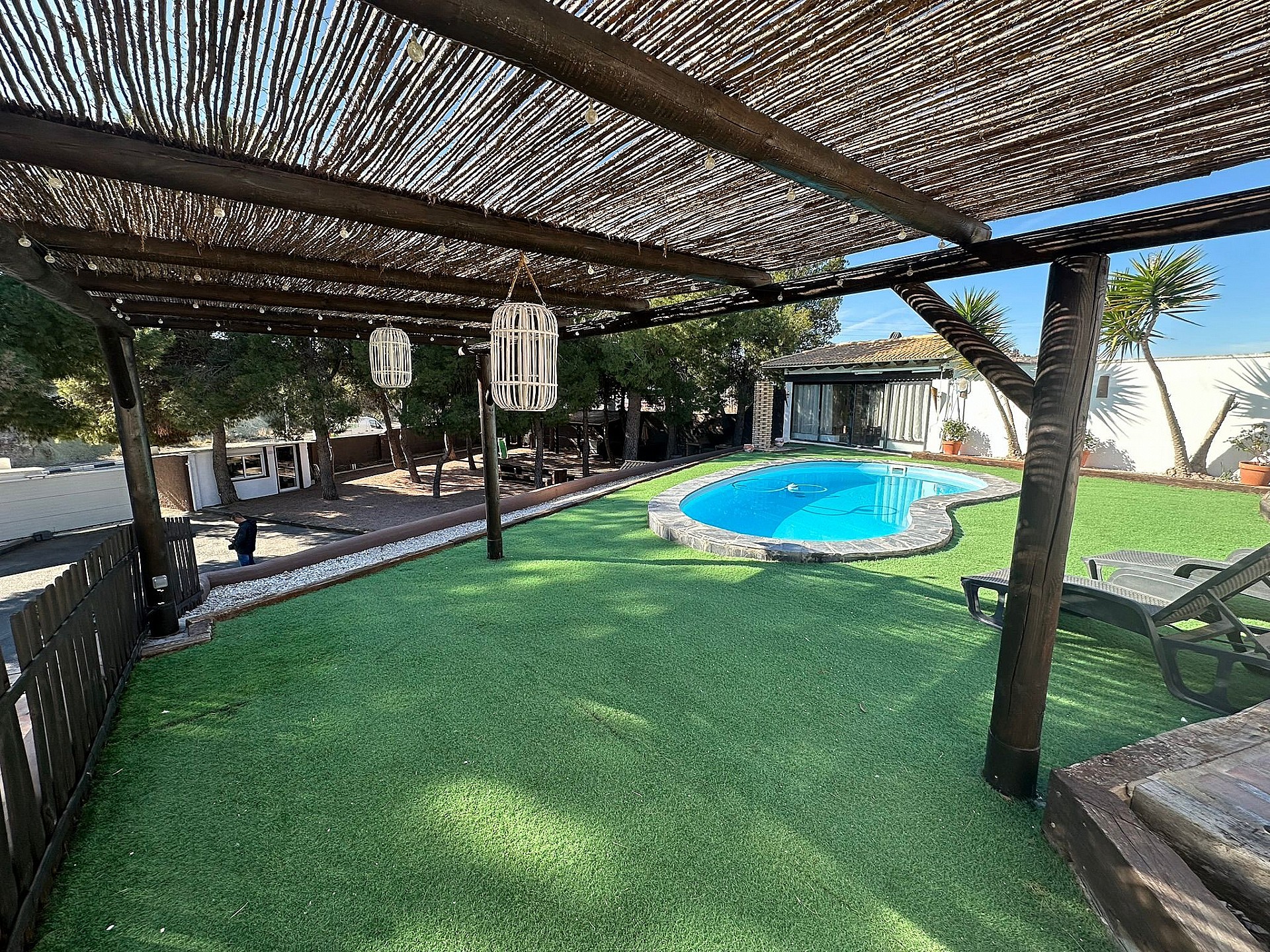 Villa Large Detached Villa walking distance to Monovar. Detached Villa walking distance to Monovar, with a size of around 100m2, 3 bedrooms and 1 bathroom, with a lounge-dining room and open plan kitchen. The plot size is 2000m2, fully enclosed with an automatic gate entrance. There is a swimming pool, a 45m2 summer kitchen by the pool with a bathroom, open barbecue area, two storage rooms, a childrens play room and various seating areas. The garden has big pine trees ideal for shade in the summer. Fully reformed villa ready to move in Monovar is a small town in Alicante province, with a population of over 13,000 people. It is about 15 km from Pinoso and famous for its marble quarries, shoe making and wine. It is in a pretty, mountainous area, the town stands at a height of 341m (1,119 ft). Monovar has several traditional fiestas during the year, ranging from “Dwarves and Giants' ' in July to the week-long town fiesta in September in honour of the Virgen de los Remedios. Like many towns in the area, traditional food includes rice dishes made with rabbit and snail, gazpacho manchego – a hearty rabbit stew, migas – fried breadcrumbs with garlic and usually chorizo and of course the local red wine. There are 4 bodegas close by. The modern day town has many bars and restaurants, small shops, a large supermarket, bullring, two wineries, a theatre/concert hall and a cultural centre. Monovar is a safe and friendly place to live and makes an interesting day visit. It is located on the CV83, the main road that runs from Elda to Pinoso.Share
